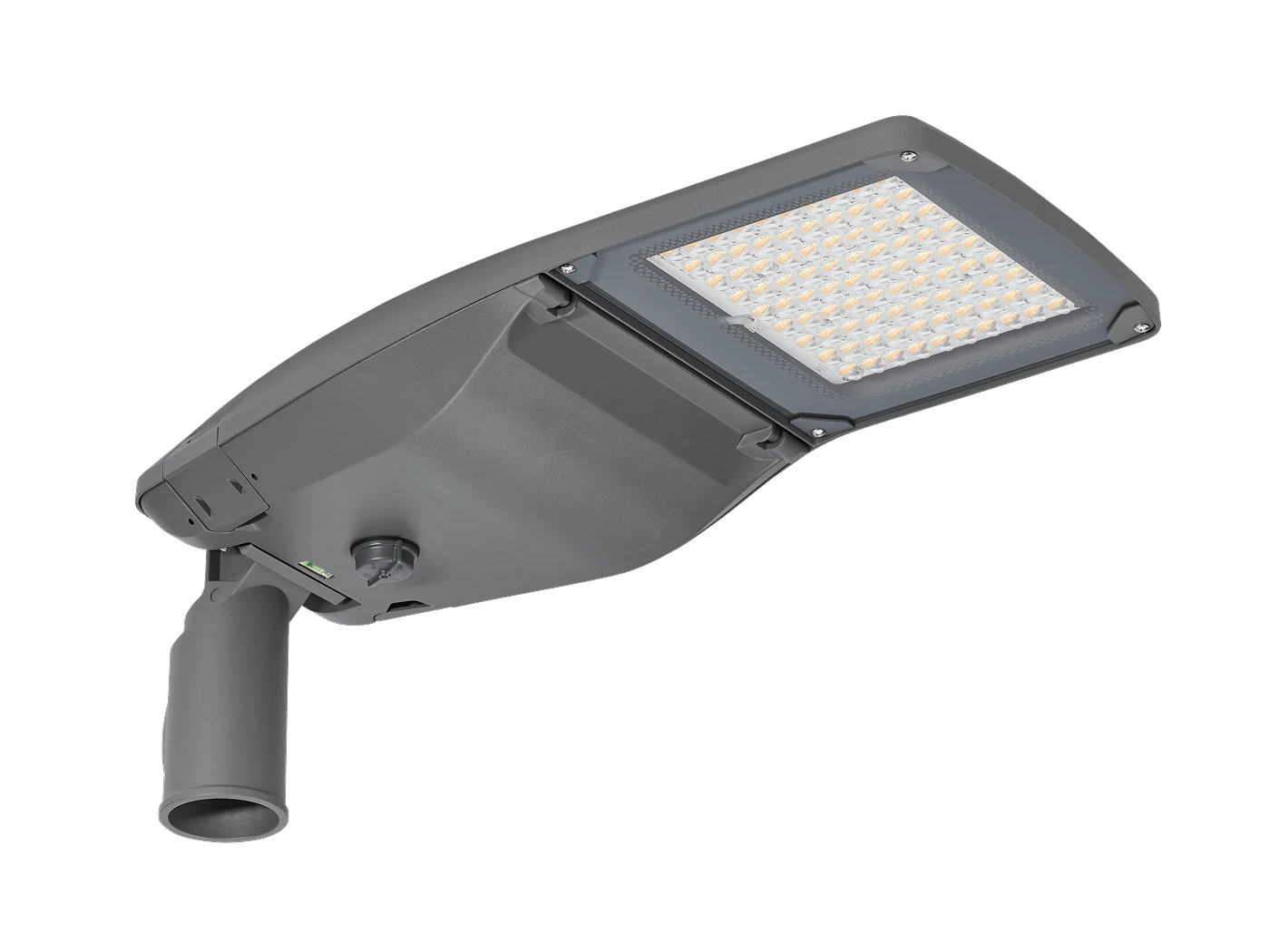 Die Leuchte lässt sich werkzeuglos öffnen, wodurch Wartung und Service deutlich vereinfacht werden. Der integrierte Konverter ist leicht zugänglich und austauschbar. Zusätzlich erleichtert eine integrierte Wasserwaage die präzise Montage am Mast.